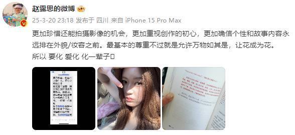 濒临黑粉口舌,赵露念念配文谈:“愈加珍重还能进行影像拍摄的契机,愈加喜爱创作的初心,愈加敬佩个性和故事实质永久排在外貌、妆容之前。”